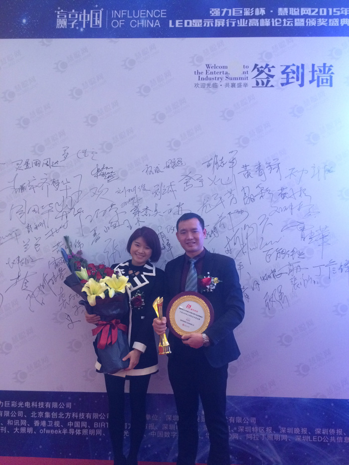 贏享中國.強(qiáng)力巨彩杯2015年LED顯示屏行業(yè)高峰論壇暨頒獎(jiǎng)盛典12月15日在深圳西麗麒麟山莊順利召開。恭喜得獎(jiǎng)的各位行業(yè)大伽及企業(yè),同時(shí)也恭喜深圳歐普特工業(yè)材料有限公司獲得十佳LED顯示屏配套企業(yè)品牌