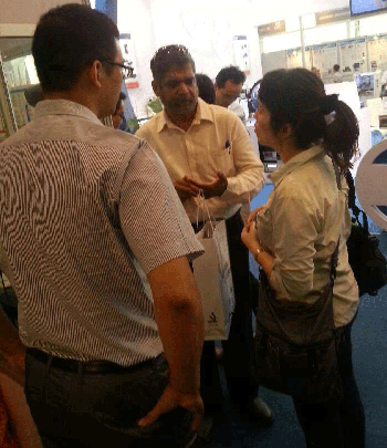 在展會上與海外朋友 暢聊產(chǎn)品及人生