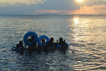 傍晚時(shí)分,我們?nèi)チ撕_叄捎诰频昱赃叺暮┤硕?公司組織了船去比較靜雅的地方,我們?cè)谶@單獨(dú)的享受大自然的氣息,可以盡情的玩耍和嘻鬧.