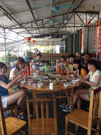 第二天午餐我們?cè)谝患倚∞r(nóng)家餐館吃的,值得一提的是,,這里有一道特別的菜----我們自已打的海鮮。大家嘗到了正真的海鮮-----原滋原味,有鮮又嫩。果然味道好極了!讓我們個(gè)個(gè)回味無(wú)窮.